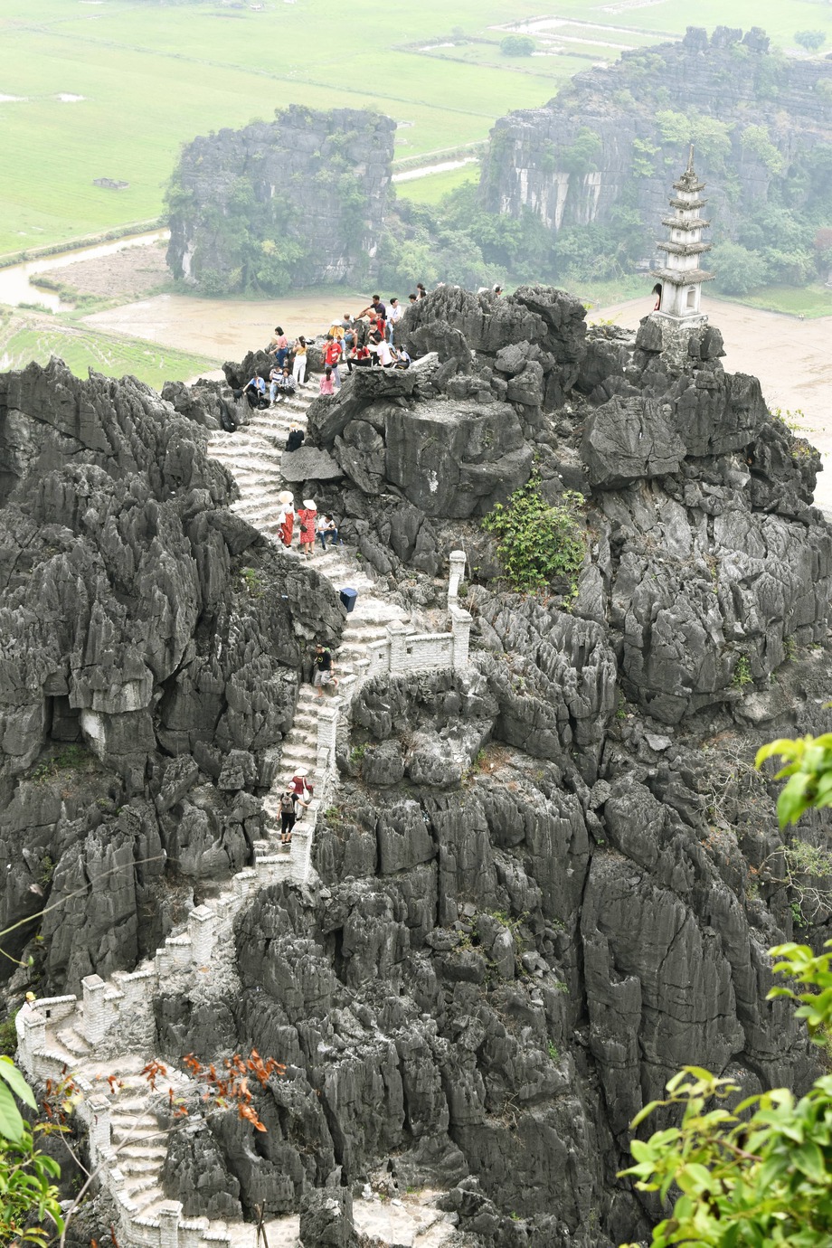 15:30 Get back to Limousine Bus then leave for Mua Cave (Dancing Cave). Walk up almost 500 steps, you can reach the top of Lying Dragon Mountain & have an amazing panoramic view of Tam Coc from here
