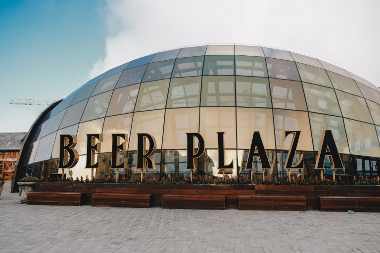 Beer Plaza: The restaurant is designed with a unique architecture, in the form of a giant yellow glass beer box with the glass dome. A 2-story stage is located in the middle of the restaurant, allowing foreign dancers and artists to dance to their heart’s content.