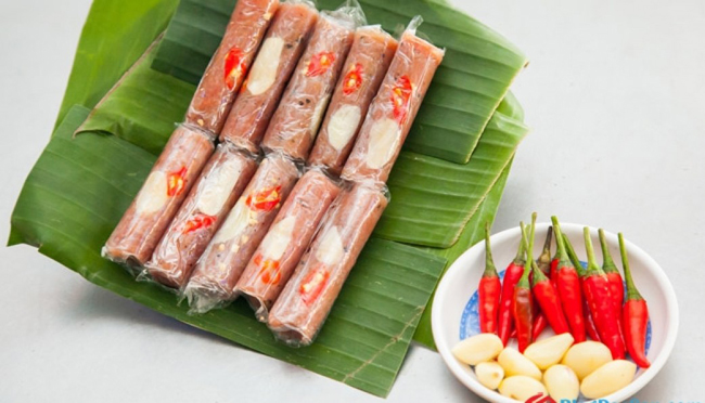 You only eat the best fermented pork in Thanh Hoa which is widely famous across the country, thanks to its delicious taste and unforgettable flavor. In fact, such specialty is made from fresh pork. That means the pork must immediately choose when the pig is slaughtered. Then, it is carefully minced and processed in a lot of steps. Another ingredient is pigskin. Once pork and pigskin are now processed, they will be then mixed with chili, salt, sugar, black pepper, fish sauce and “thính.” Next, the mix is wrapped in “dong” and banana leaves. In general, each packed roll may be eaten after 3 or 4 days.