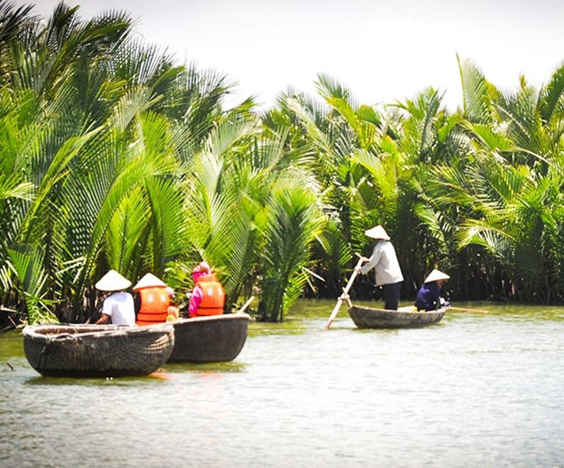 Then we will take 30 minutes drive to Cam Thanh coconut village and have fun on basket boats with the locals. You will be immersed in the natural beauty of the palm forest.