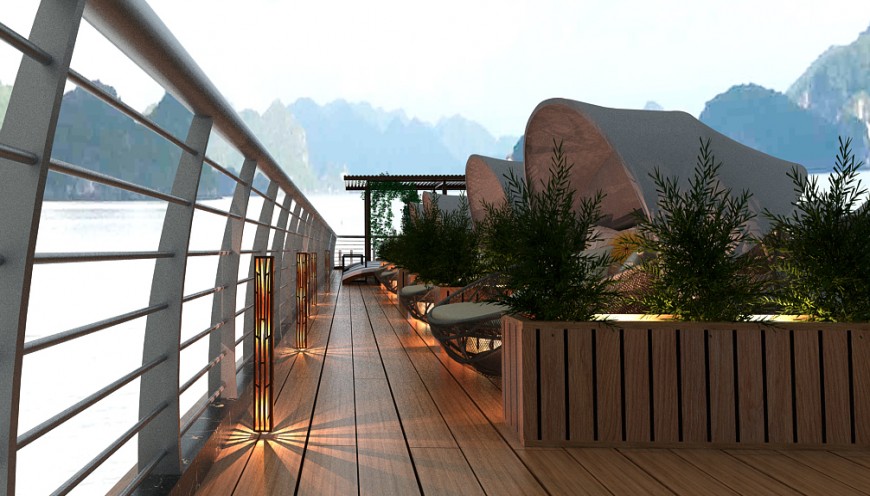 Evening activities include: Leisure time to enjoy a chat around the bar, watching movies and many sorts of Vietnam cultural films, relaxing and spending a romantic night on Alisa Cruise’s music, playing cards, chess are available, reading magazines in room and dining room. You may also try your luck at squid fishing & fishing from the boat.