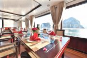 With luxury of many open panorama ensuite cabins included deluxe, ocean view, suite cabins, and big sundeck for children…, it will be a best choice for all couple, families, or any type of solo travelers looking for best trip. Our boat has 21 cabins, all with balcony and large windows with sea view. You will have the chance to admire the sunset and the sunrise on your private balcony in the quite atmosphere of Lan Ha Bay.
