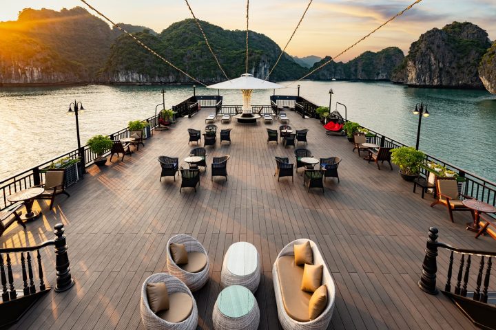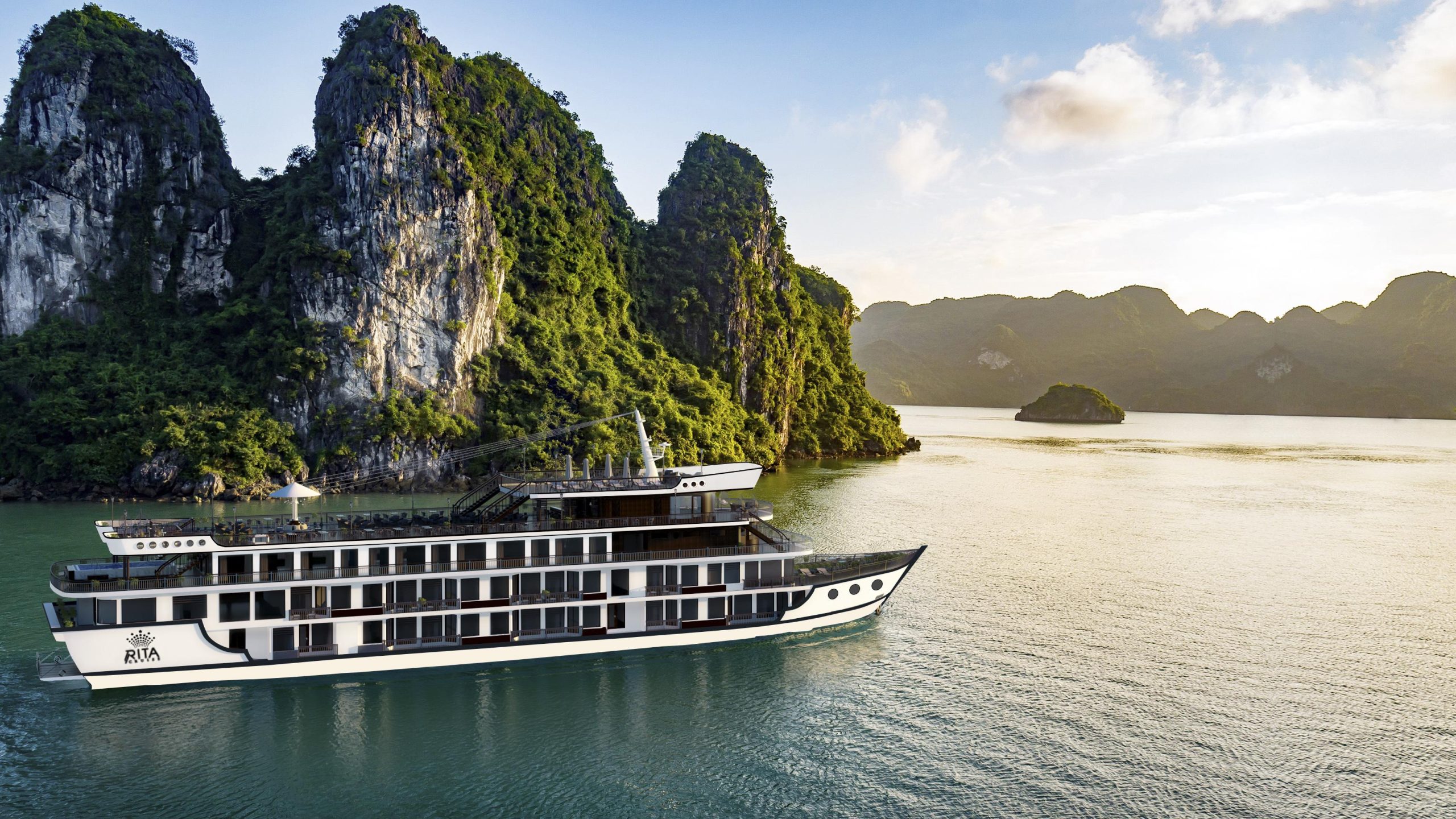 Rita Cruise is newly luxurious cruise meeting International 5-star++ standard. It is the first cruise with available swimming pool and private soundproof Karaoke lounge. All cabins have available private balcony with ocean views. The itineraries are exclusive and different to all cruises with unique and original Lan Ha Bay where is not too crowed.